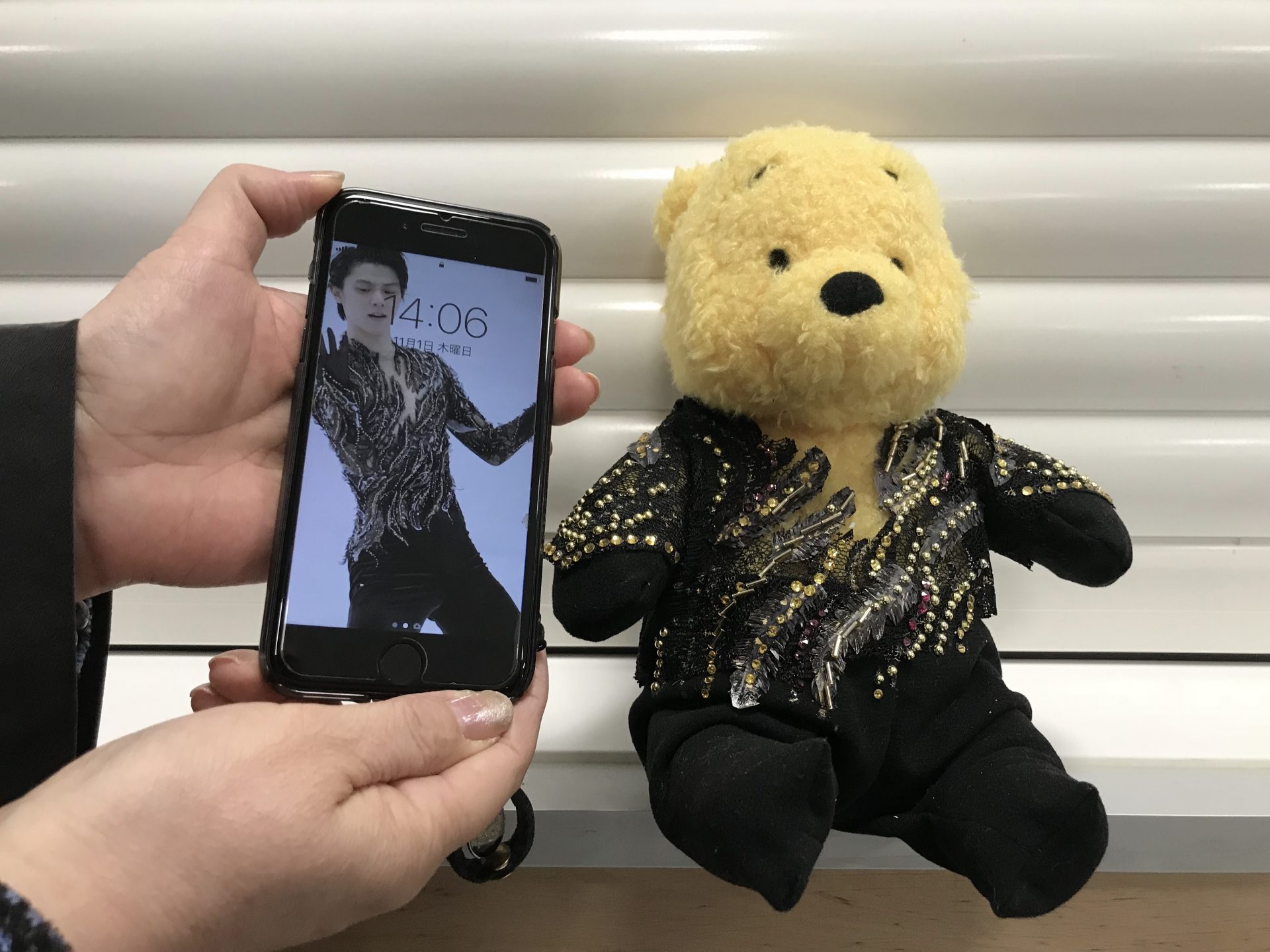 Detohashilla on kisoissa mukana keltainen pehmokarhu, josta on tullut Hanyun tavaramerkki. Se on saanut ylleen luistelutähden vapaaohjelman kilpailupukua muistuttavan asun – kaikki on viimeisen päälle hiottua. Eikä tässä vielä kaikki: Detohashin kassista paljastuu lisää fanituotteita ja avaimenperässä on tietysti tähden valokuva.